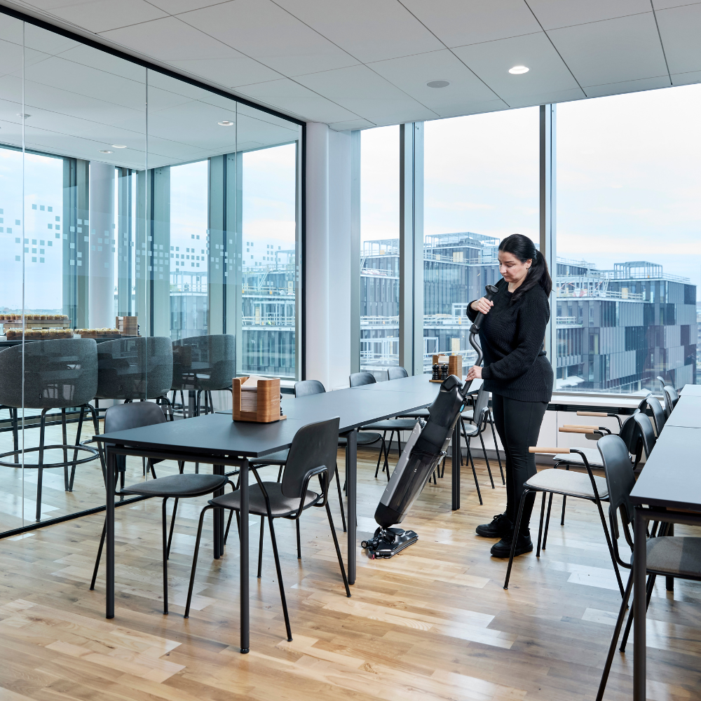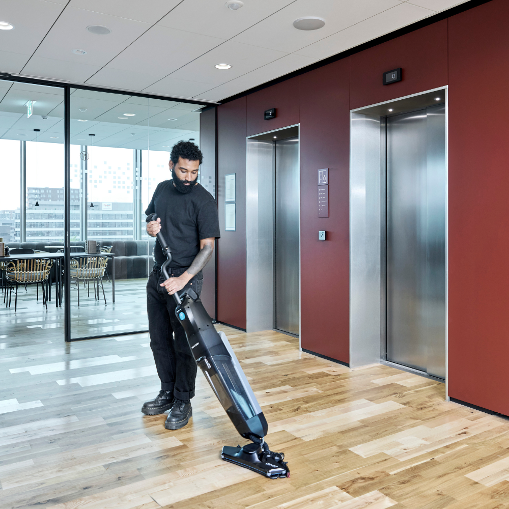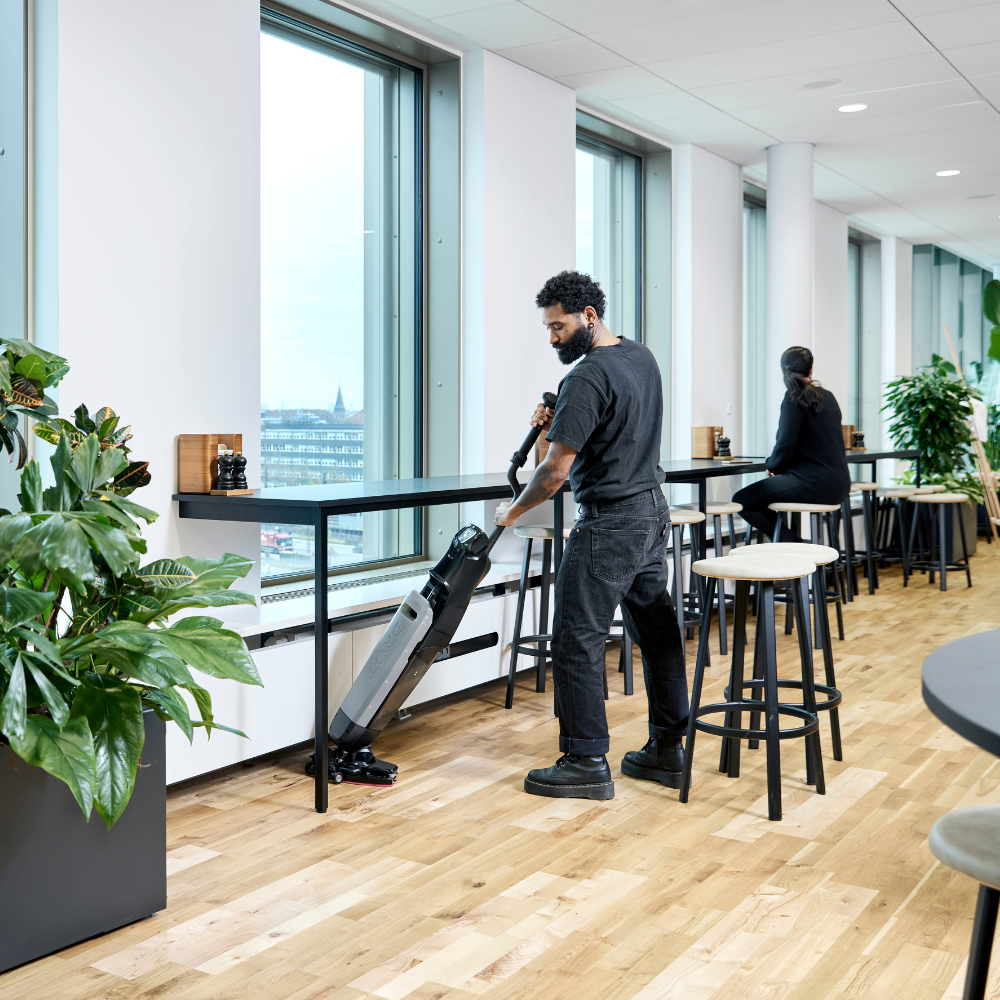 Nilfisk Dryft es la forma más sencilla de lograr una limpieza más profunda y eficiente. Más higiénica que una fregona y del tamaño de un aspirador convencional, nuestra primera microfregadora de barra limpia con facilidad todos los lugares de difícil acceso: espacios congestionados, esquinas y bordes incómodos, huecos estrechos y alrededor de obstáculos.